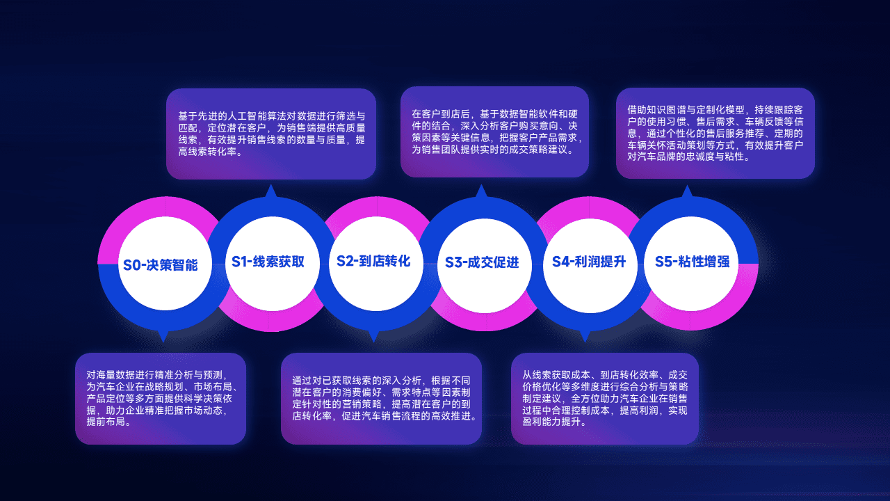 通过拓宽潜在客户来源、、优化线索分配并提高到店转化率,,,以增强销售效率。。同时,,利用线索数据不断优化分析模型,,,,有效提升转化率,,,扩大营销影响力。。。